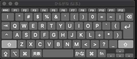 ※キーボードビューアは、メニューバー>「入力メニュー」>「キーボードビューアを表示」を選択して表示できます