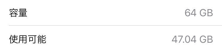 iPhoneストレージの空き容量は、47.04GBです。