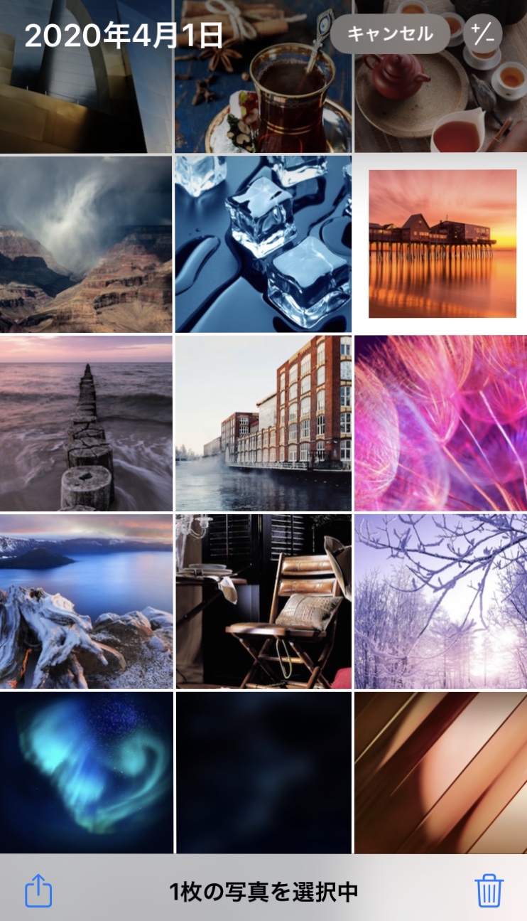 「写真」→「全ての写真」→「選択」と進むと、勝手に1つの写真が選択されてしまいます。