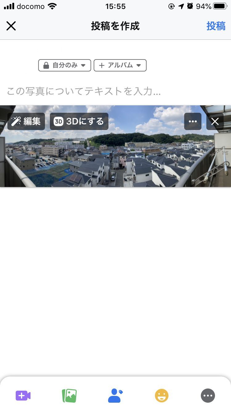 iphoneSE(第二世代)で、パノラマ撮影して、Facebookに投稿しても、普通の横長写真でアップロードされてます。