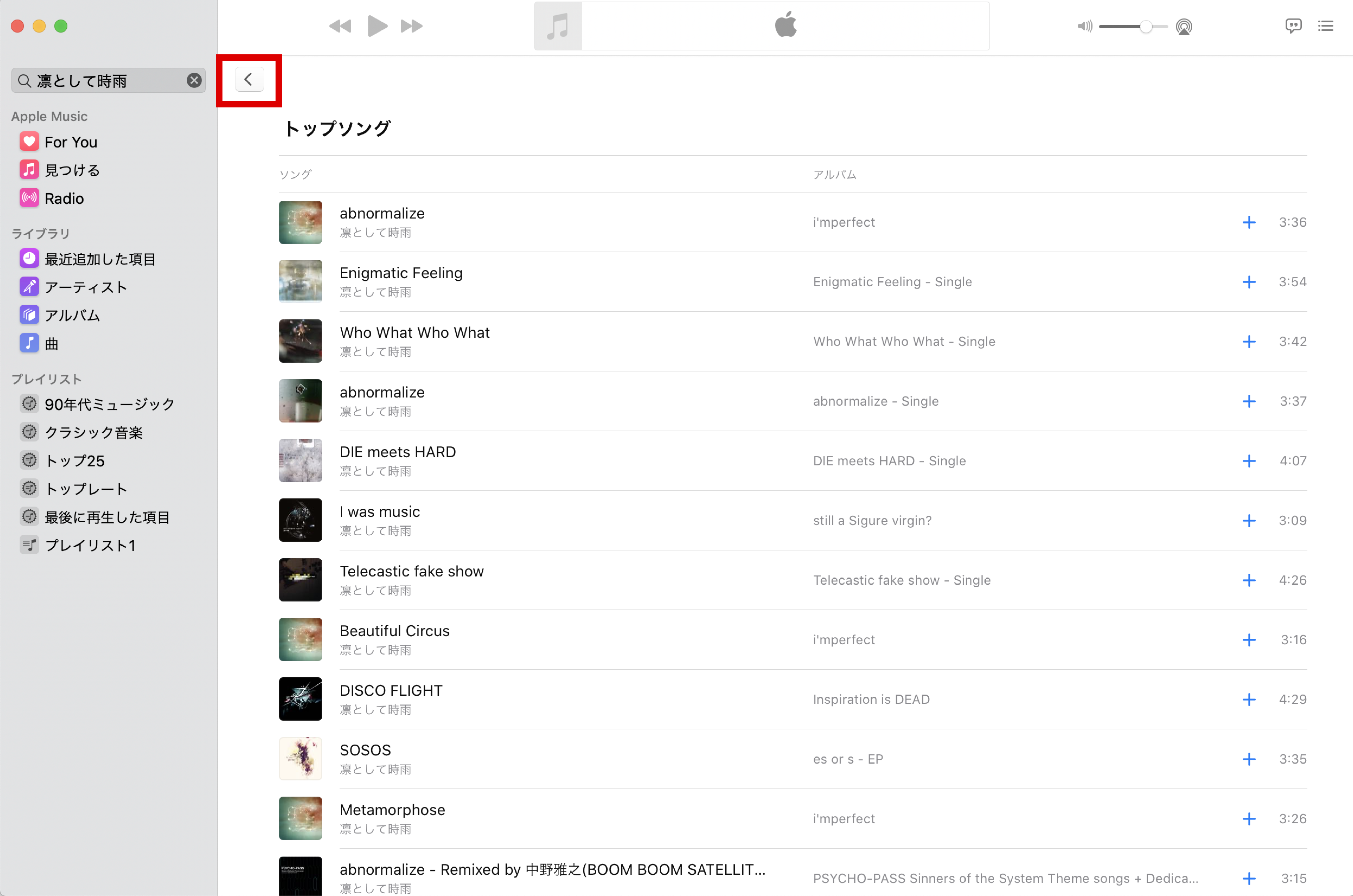 ミュージックアプリでApple Musicでアーティスト名などで検索し、曲や「すべてを見る」などをクリックして画面遷移したあとに、前の画面に戻ろうとしても戻るボタンがないため戻れません。(添付画像参照)