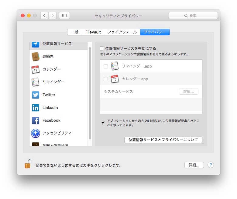 ちなみに、「システム環境設定」→「セキュリティとプライバシー」を開いてみましたが、ここには「LINE」が見当たりません。