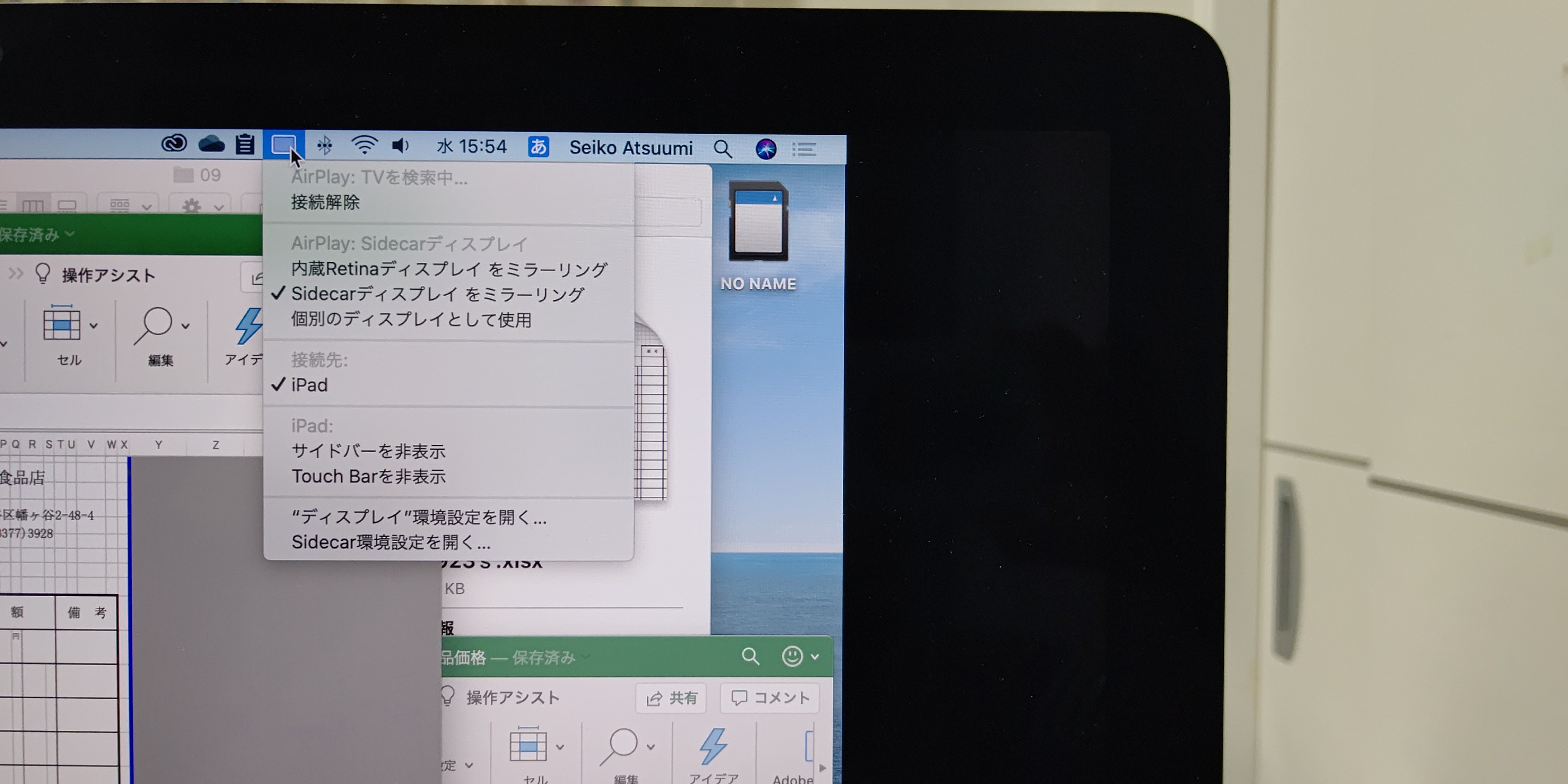 「Sidecarディスプレイをミラーリング」を選択しても、