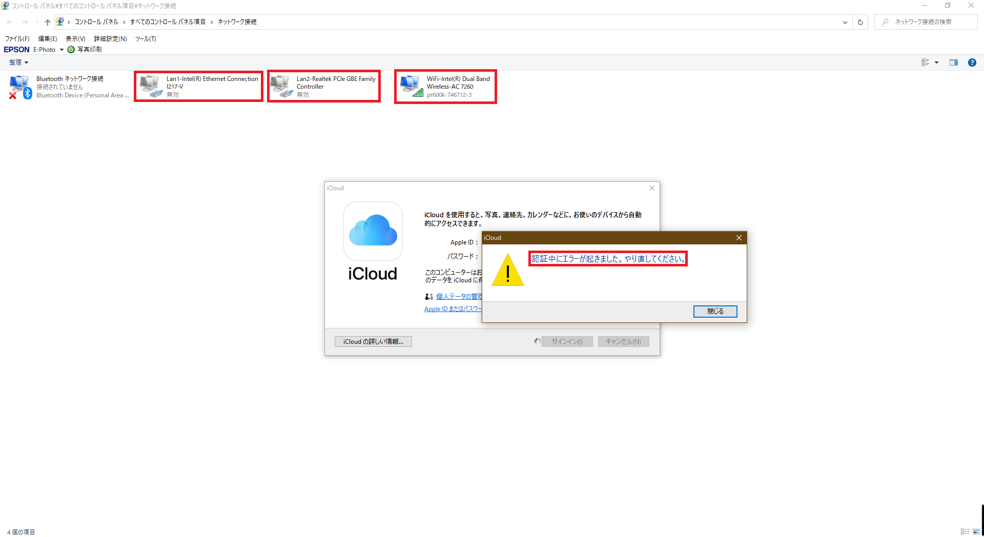 Wi-Fi接続でも、『iCloud For Windows』にログインできない事象は、現時点で解決されていません。