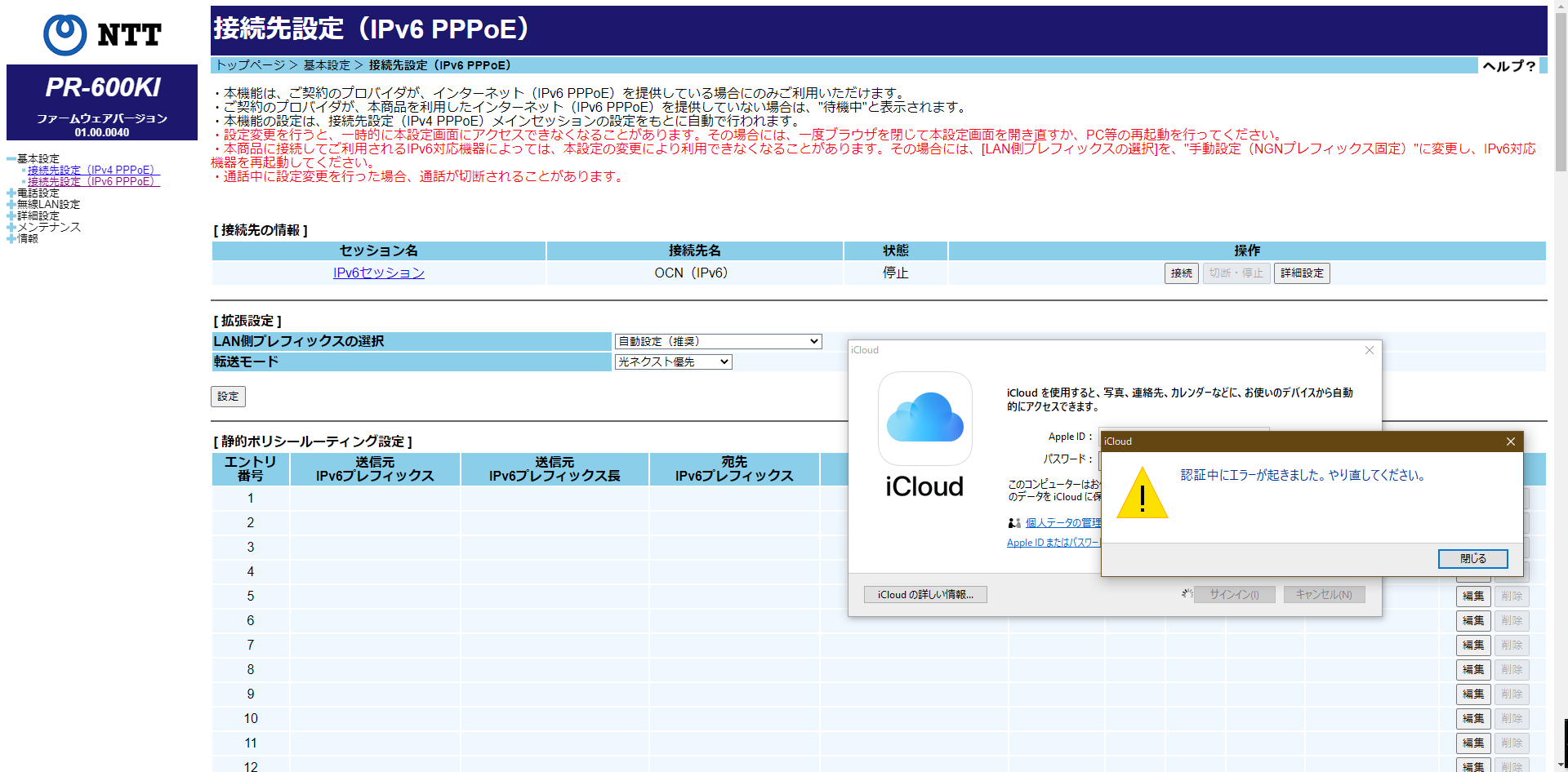 IPv6の環境でログインを試みると「認証中にエラー」が起きるようです。