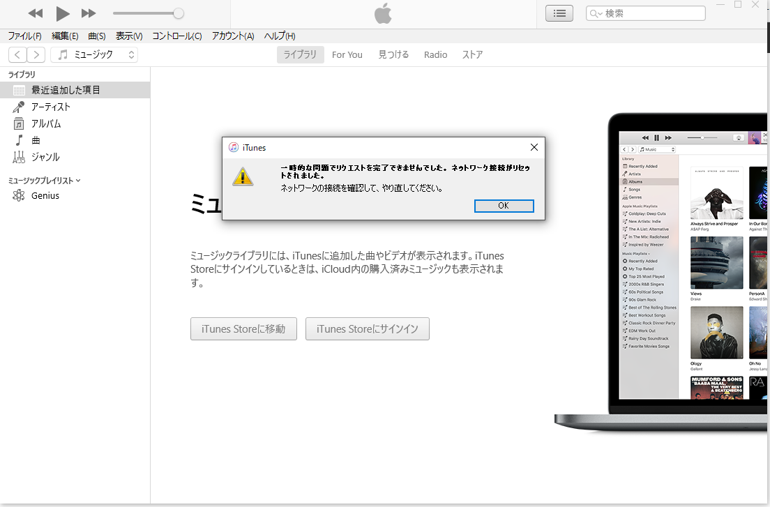 itunes for Windowsでアカウント認証をしようとすると添付画像のようなエラーになり認証出来ません