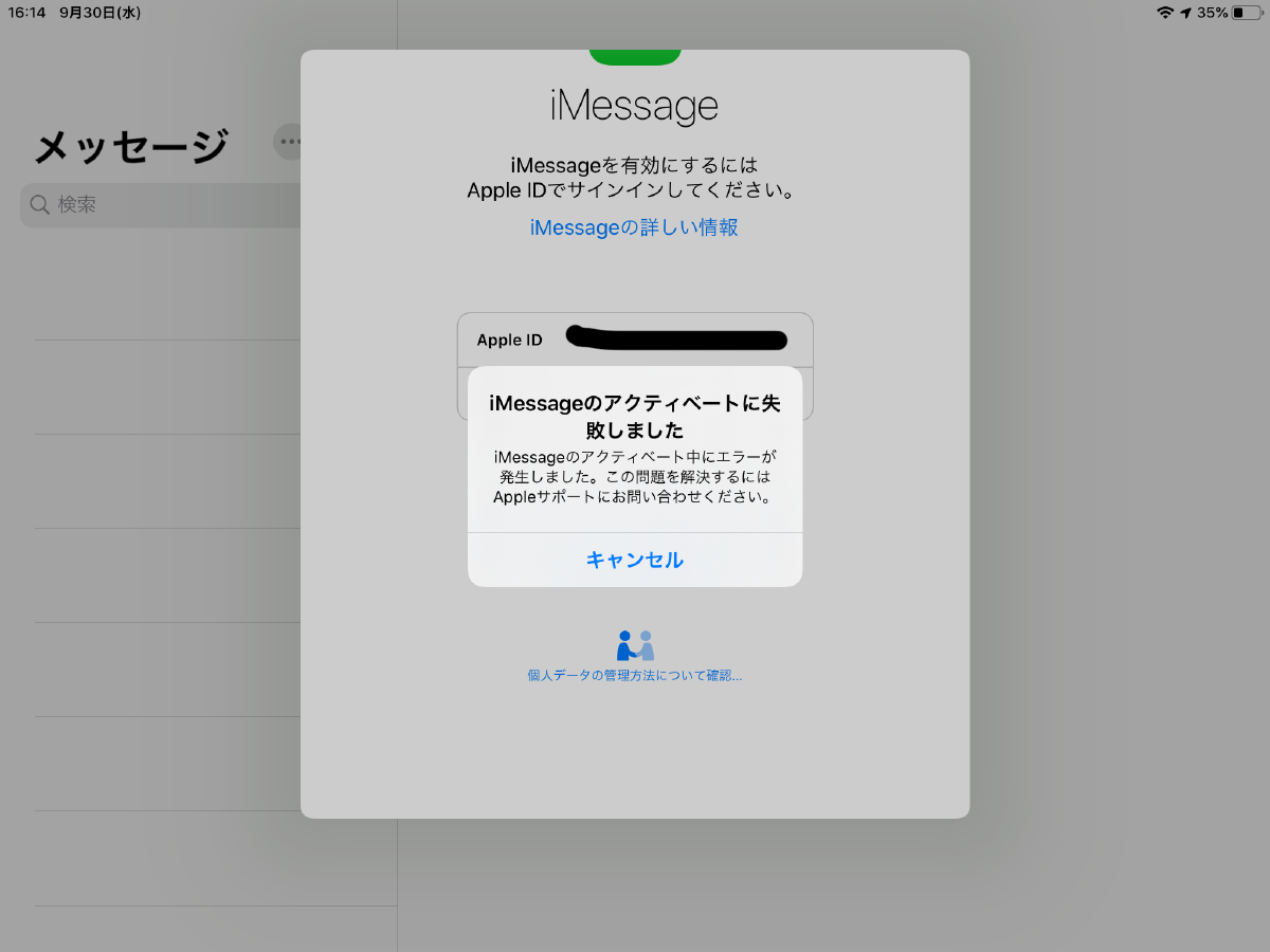 メッセージを開くと、iMessageのアクティベートに失敗しました