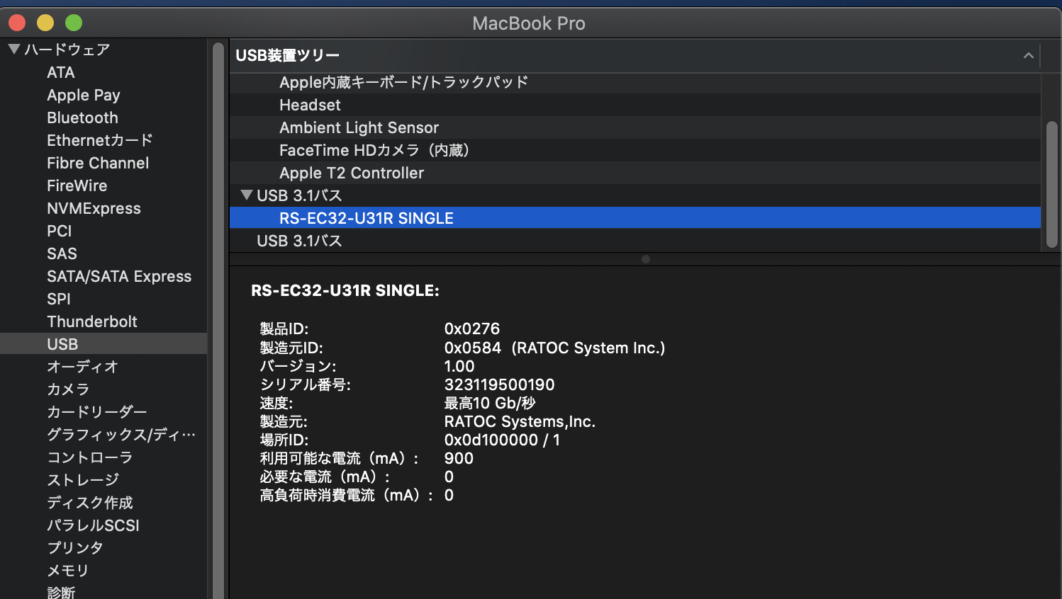 thunderbolt3のケーブルを使用してみましたが、認識しませんでした。ケーブルはApple純正です。