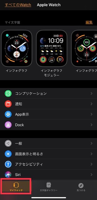 ペアリングしたiphoneのwatchアプリのマイウォッチで...とあるのですが、そのマイウォッチというのがiphoneの画面に出て来ません。