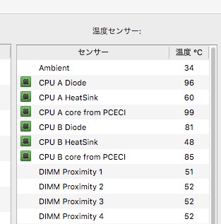 ただし、この数値は、DTS(Digital Thermal Sensor)の数値で補正したもので、正確な温度を知る為の仕組みですが、CPUメーカーの設定したTControl値に、Appleが筐体の熱設計に合わせたオフセット値で補正した温度が基準となりますから、アプリによっては正確な数値がでない場合もあります。