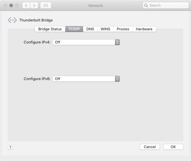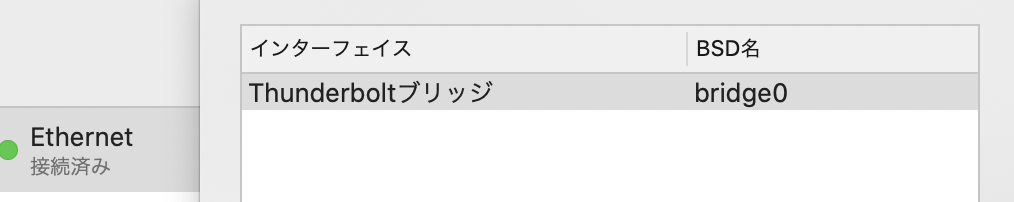 という項目がありそこに「Thunder boltブリッジ(bridge0)」が自動的に設定されています。