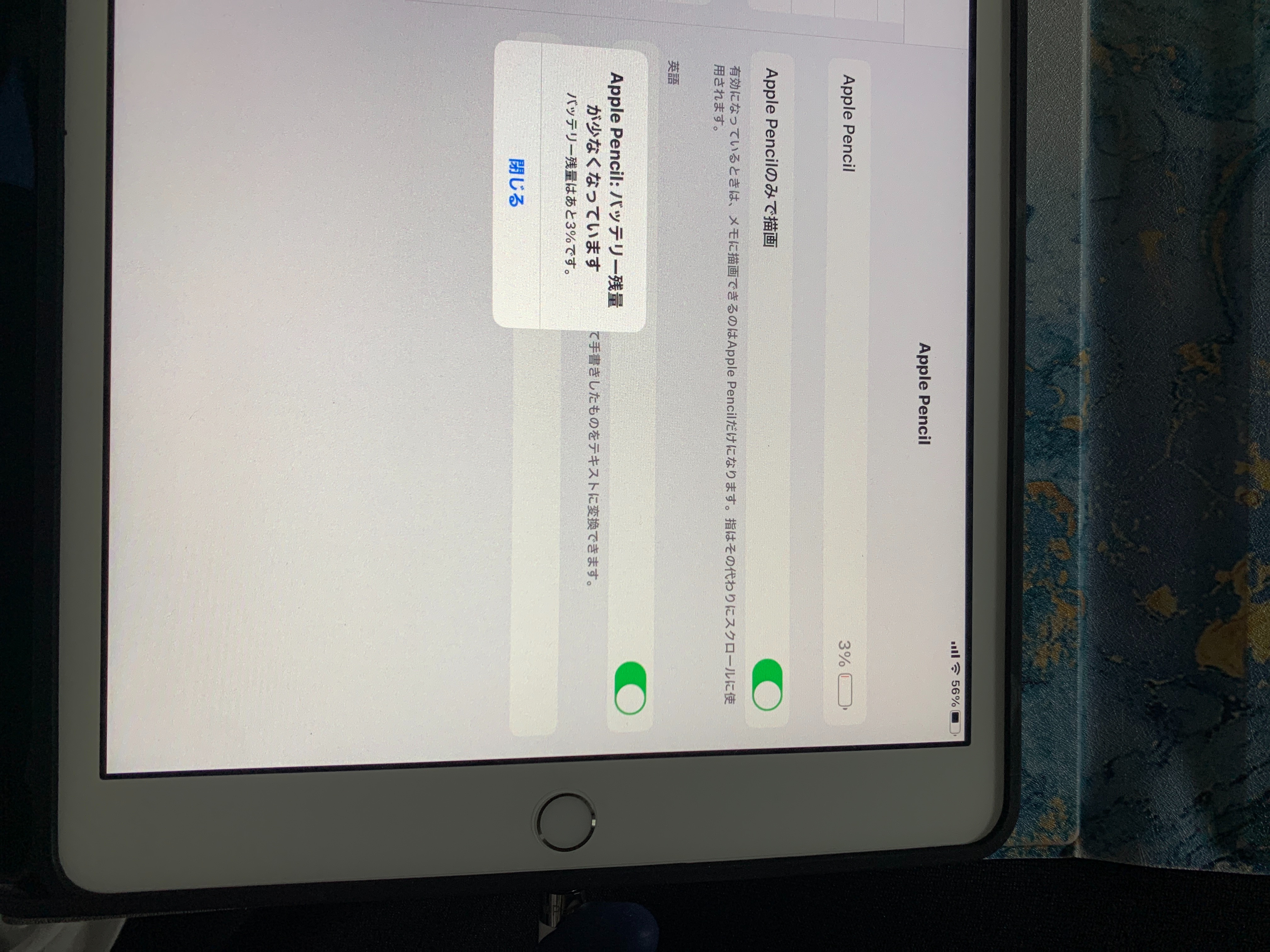 そこからiPadの電源を消してつける、Bluetoothの解除,接続、ケーブルでのpencil充電を試したのですが解決出来ず。