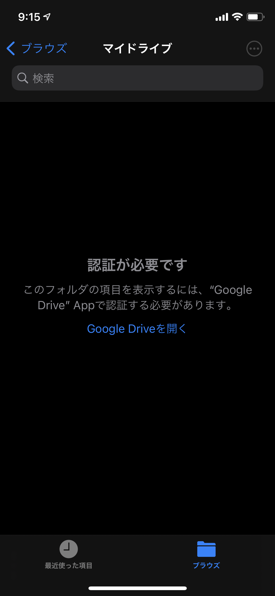 今回、"ファイル"App>ブラウザ>場所>Google Drive の内容を見たいと考えております。