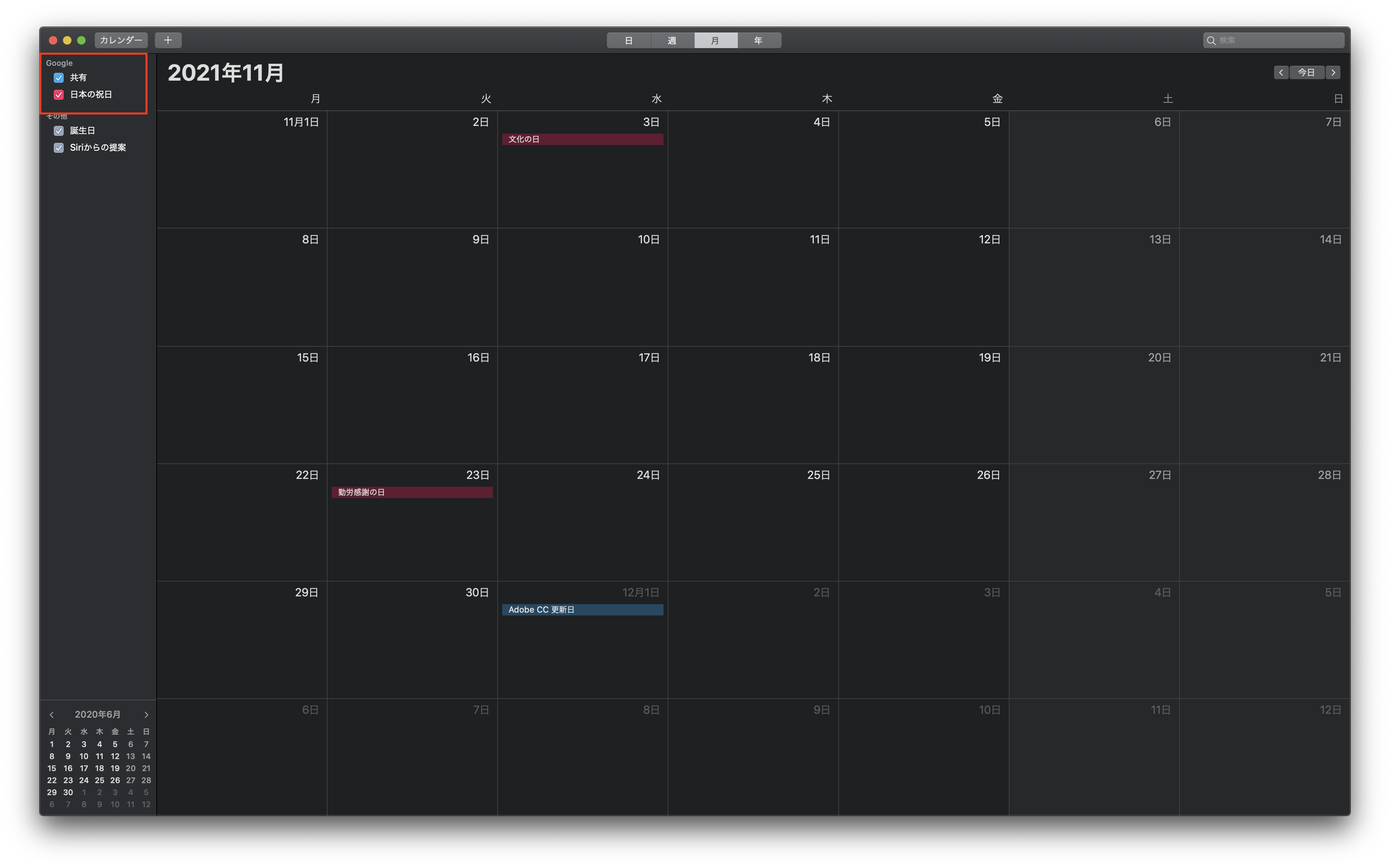 それと、もうずいぶん以前からAppleの祝日カレンダーは使用していません。