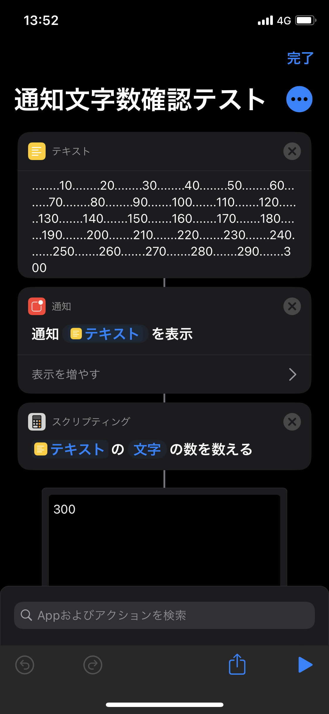 どうやら通知アクションの表示文字数に256文字の上限があるようです。