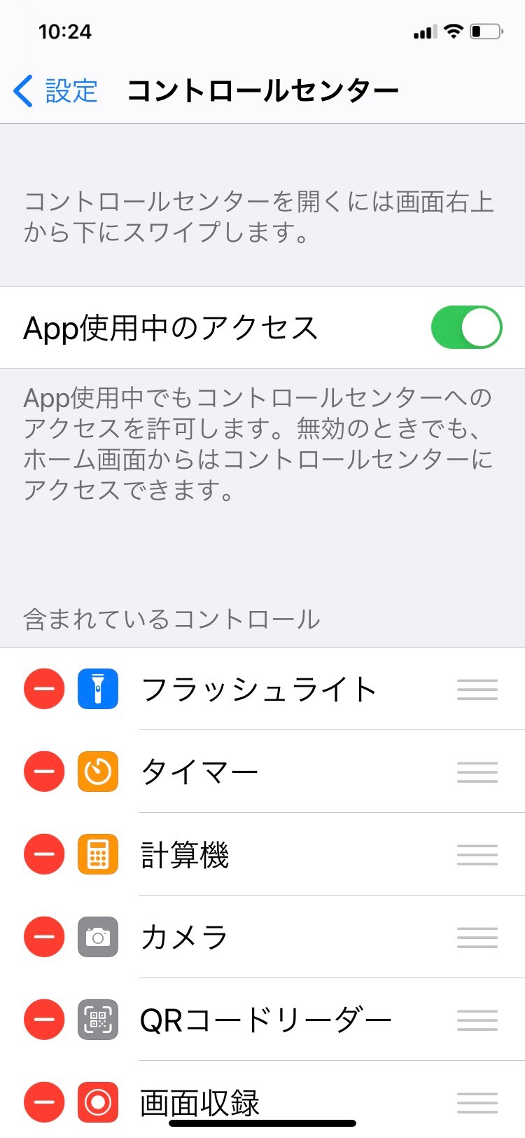 iOS14ではカスタマイズというメニューはなく、本来であればその下に追加可能な項目が表示されるはずですが、再起動しても表示されませんか?