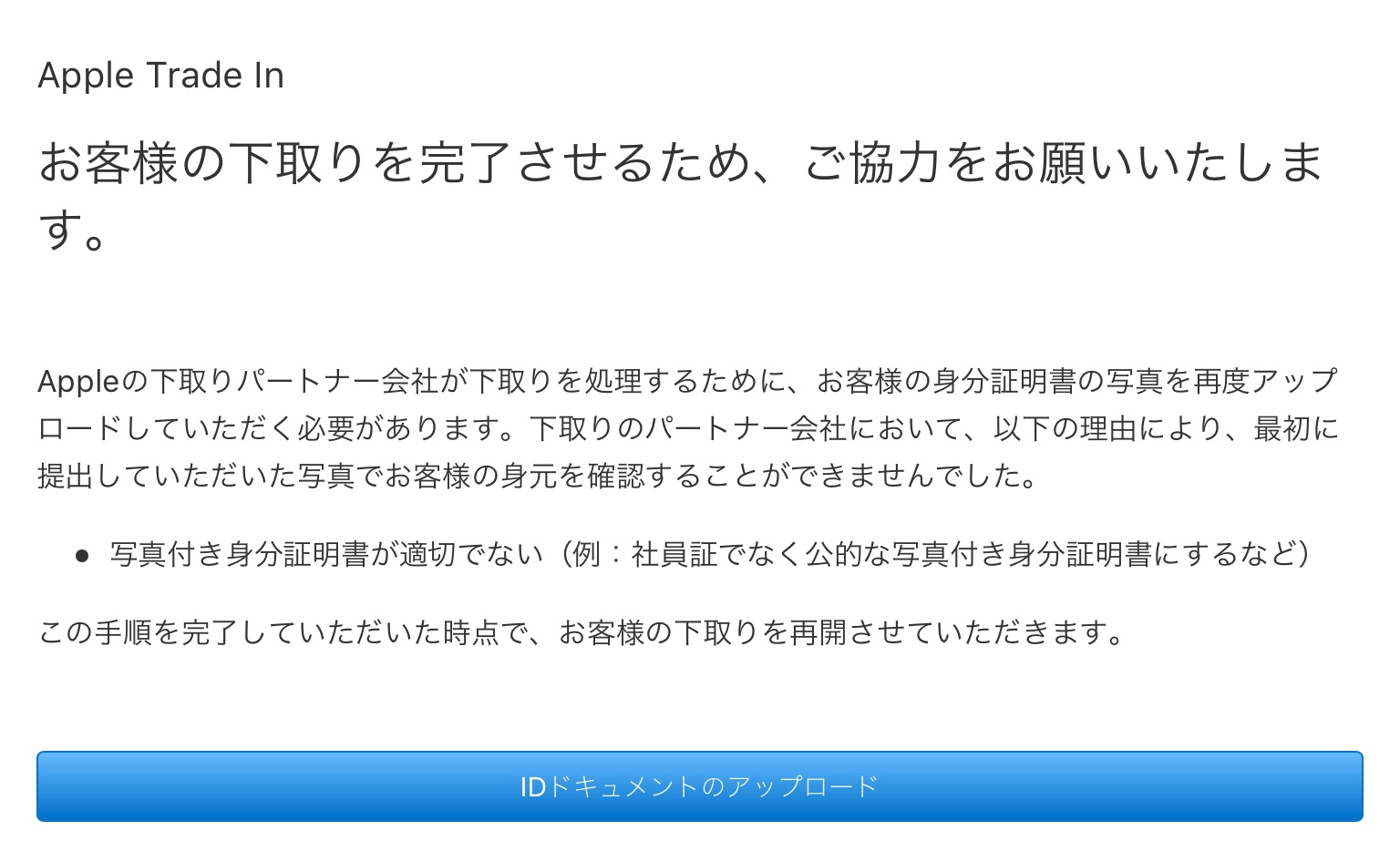 iPhone12を購入し、iPhone8を下取りに出したいのですが免許証、保険証をアップロードしても2回キャンセルされました。なぜでしょうか?