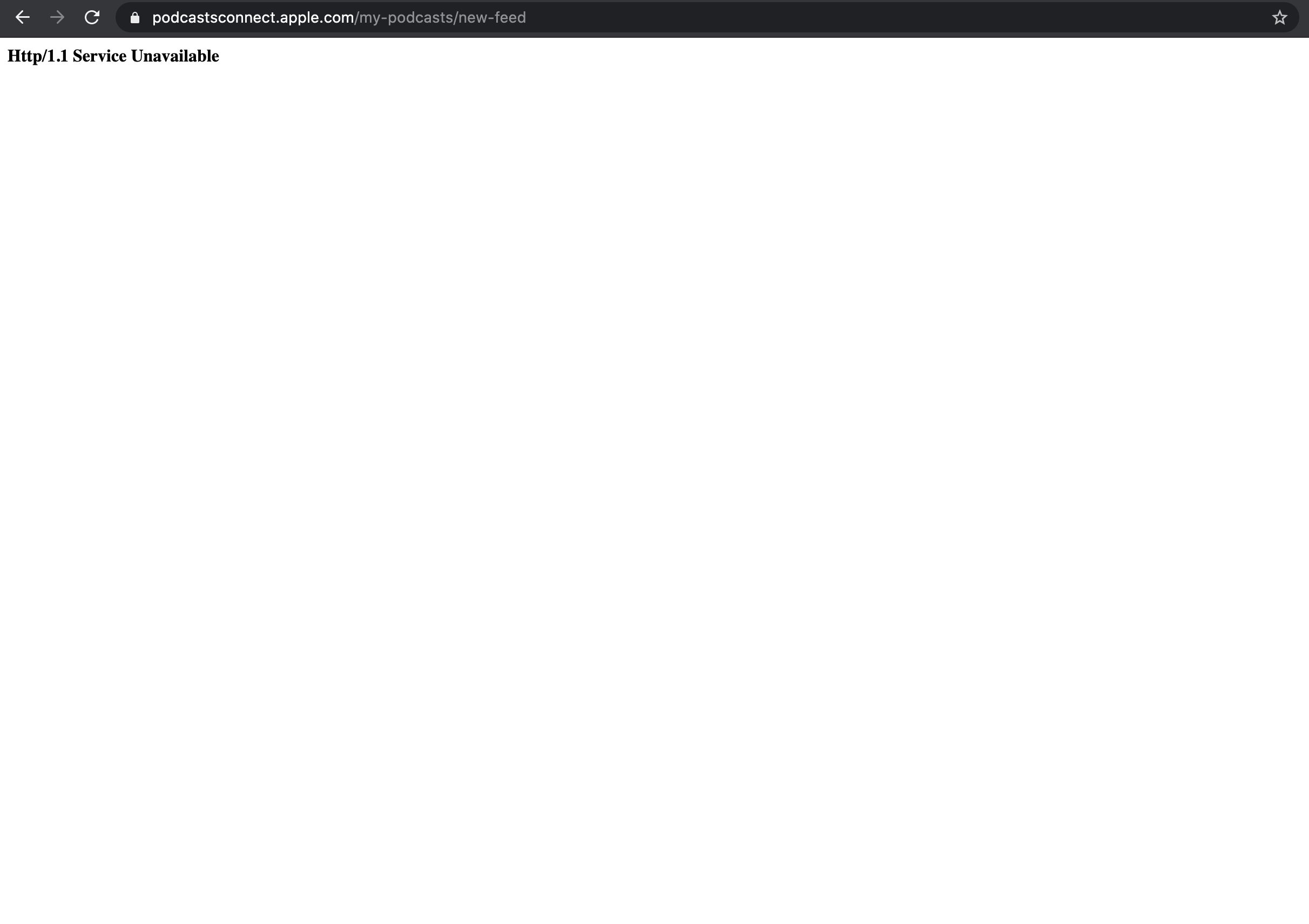 iTunes ConnectよりポッドキャストのRSSを提出したいのですが「Service Unavailable」と白い画面が出てきます。