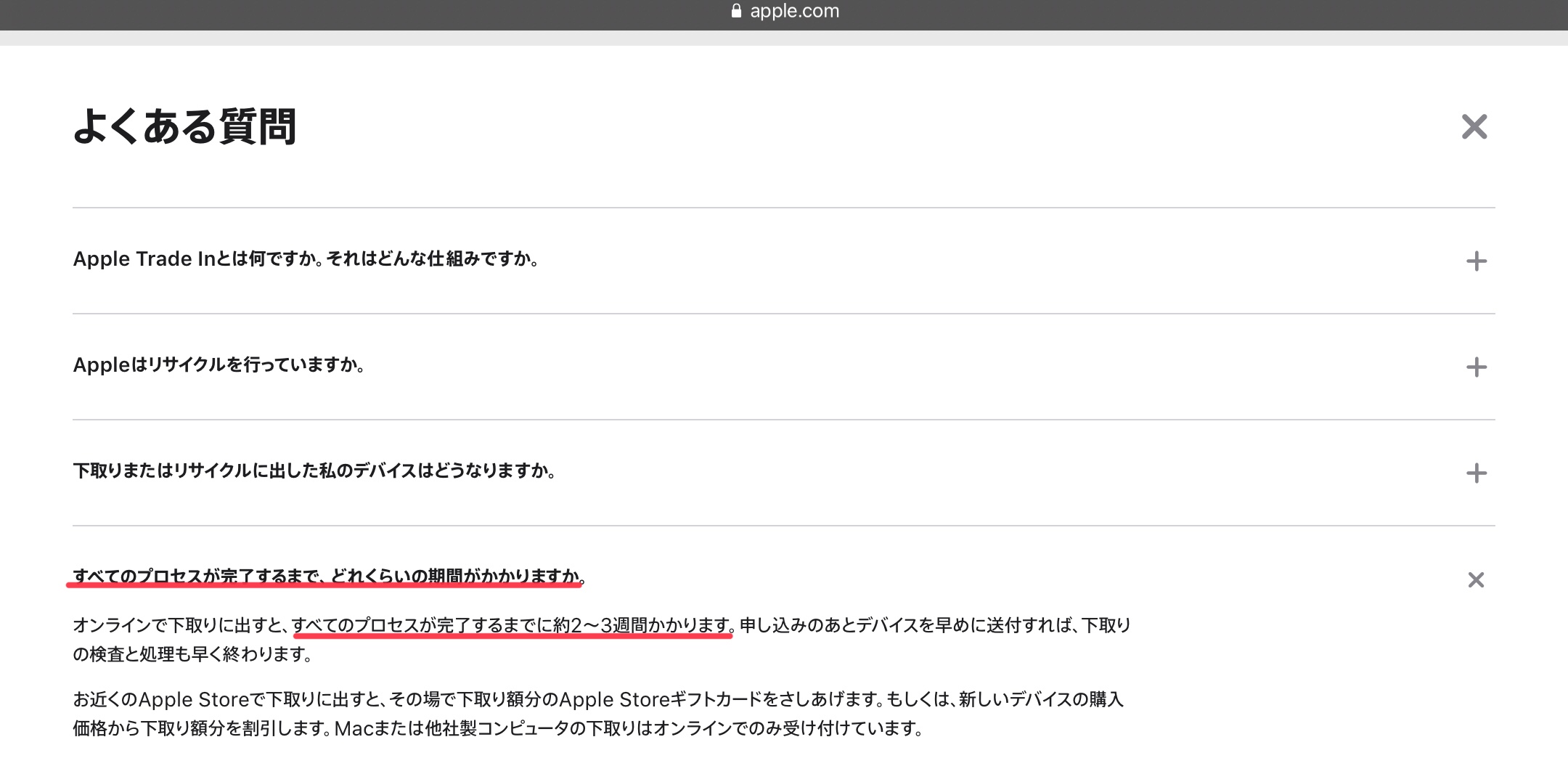 新apple のスマホをApple のネットで買い、旧apple スマホ下取りに出しました。アップルのtrade in のシステムを利用しました。引き取り来た業者に渡しましたが、10日たってもその後何の連絡もありません。ちょっと心配になって来ました。同じ経験をした方はその後どう解決されたか教えて下さい。