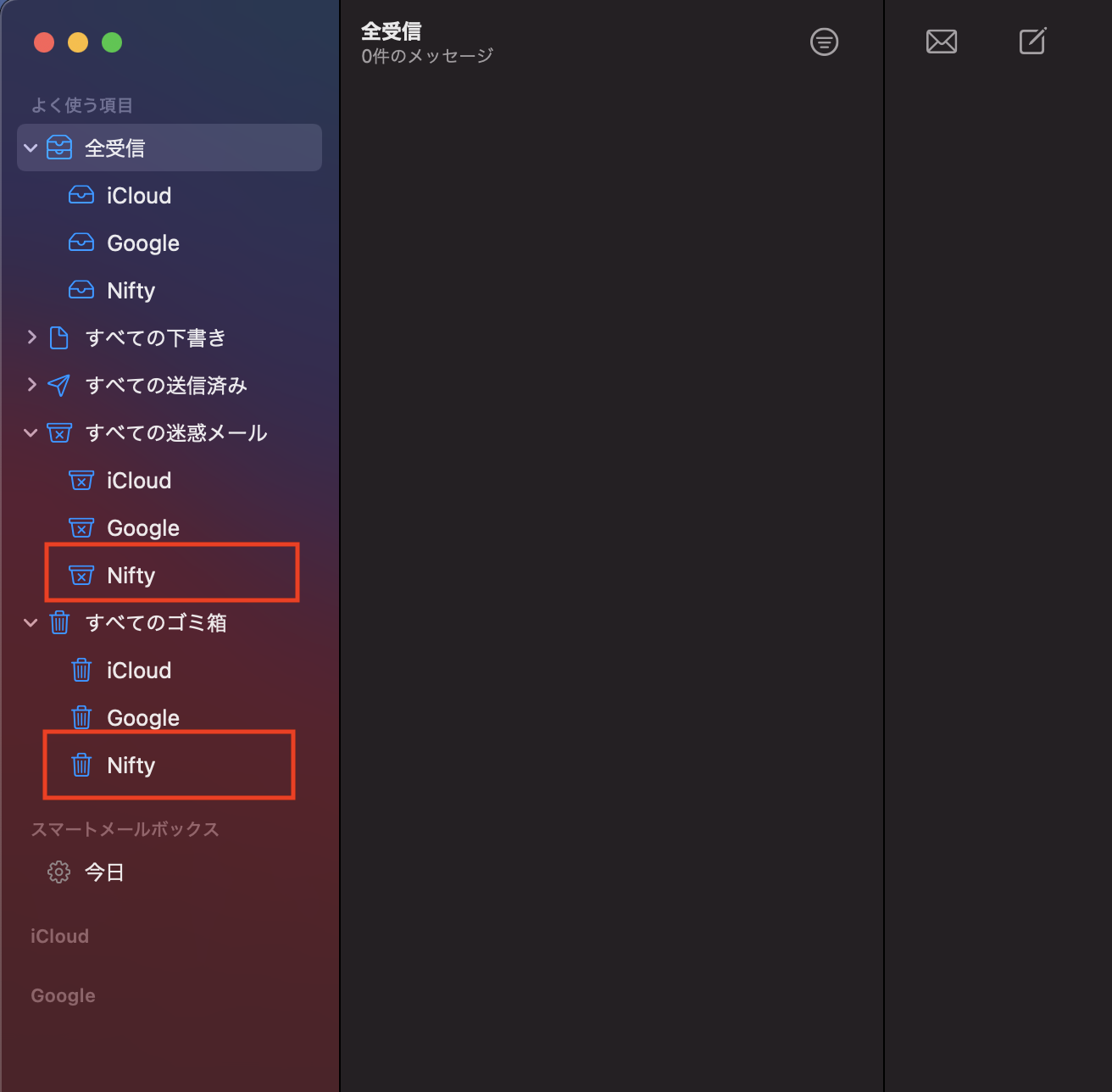 参考:同時に受信しているgmailやcloudメールを削除すると各々の<ゴミ箱>に入っています。