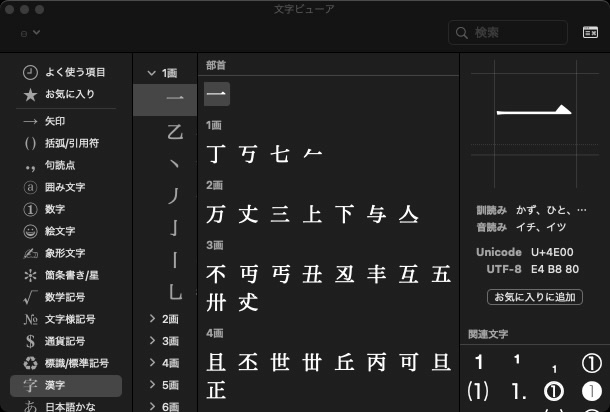 パネルそのものの横幅を広げたら、部首カラムも広がりました。その状態では部首