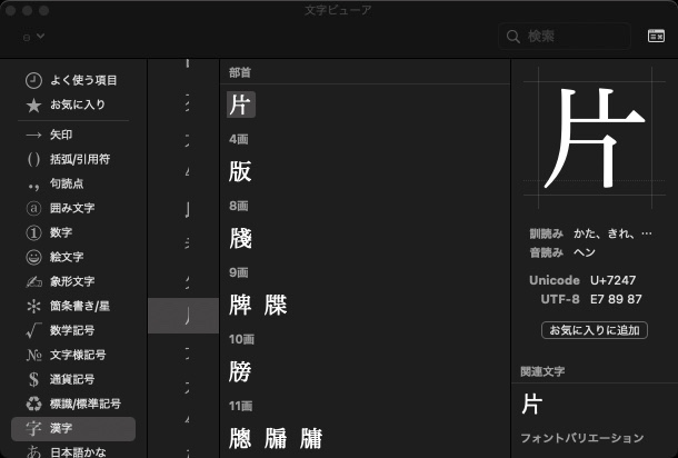 文字ビューアで漢字を選択したとき部首が正しく表示されない