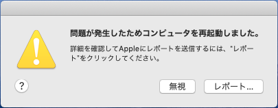 Mac mini2018(os 10.14.6)でスリープすると必ず再起動し、下記のウィンドウが表示されます。