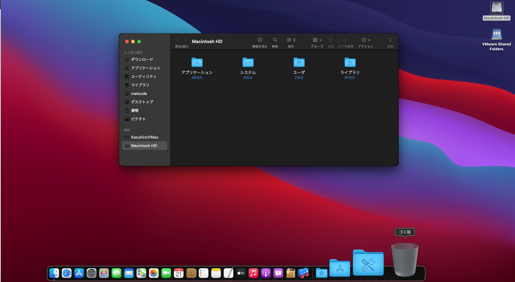 com.apple.Finder.plistの削除してみましたが、症状は治りません。別途VmwareでBig Sur betaを評価していますが、それも同じようにデスクトップの上半分に長方形で表示されますね。