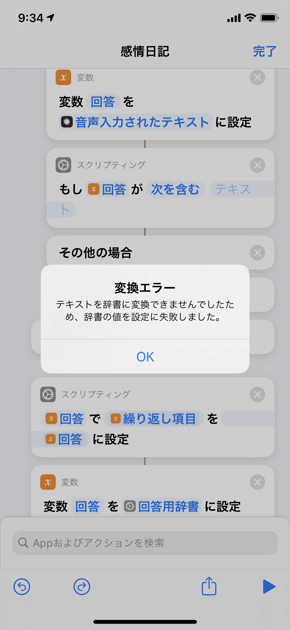Appleで公開している「感情日記」のショートカットが正常に動作しません。