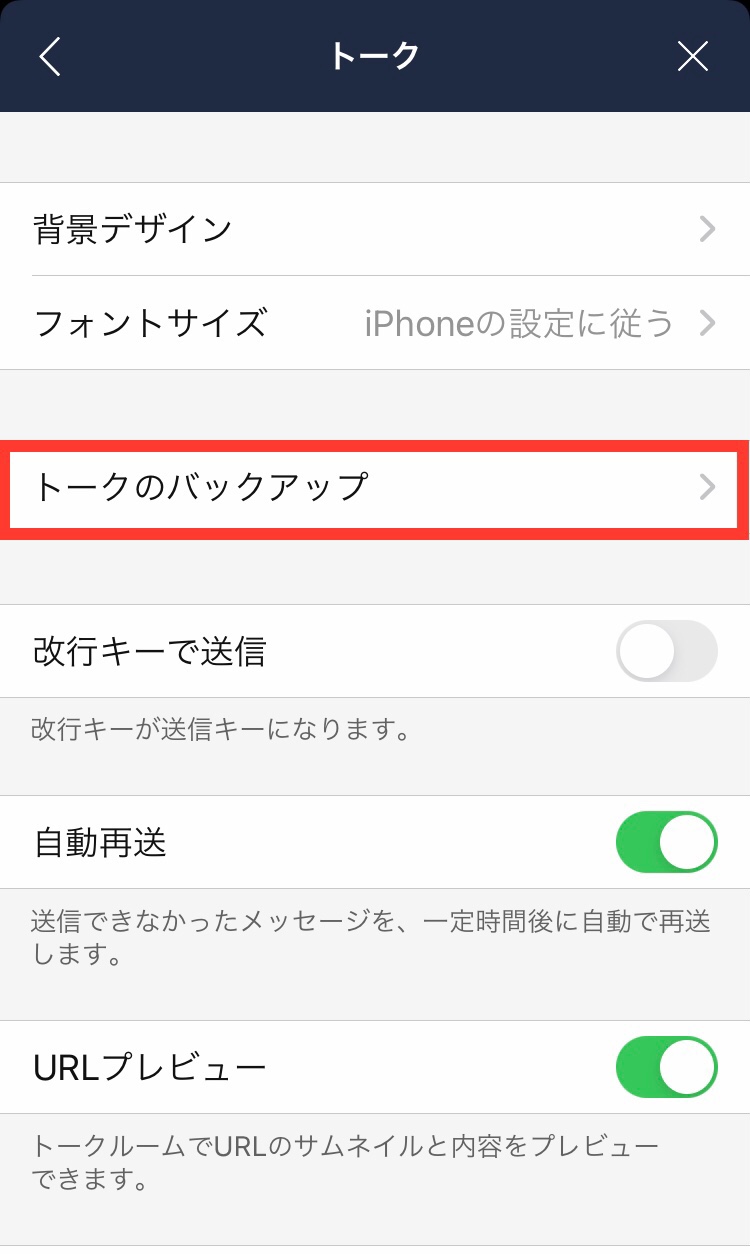 ちなみに、トーク履歴については、バックアップをとる必要があります。