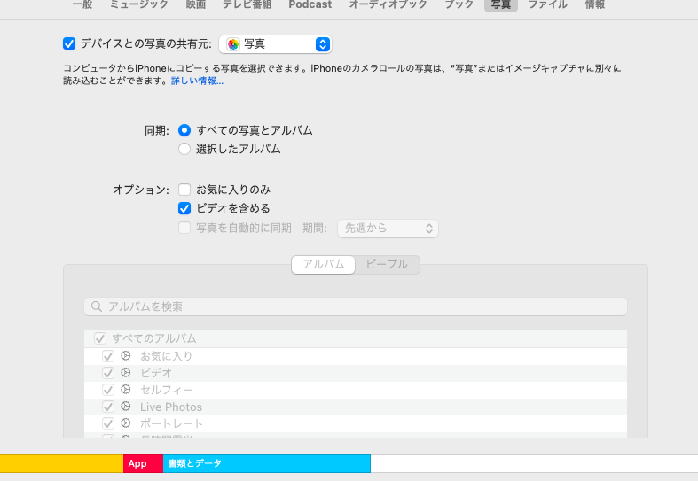 Macの写真アプリからiPhoneへ写真は同期できるのですが、アルバムが同期できません。