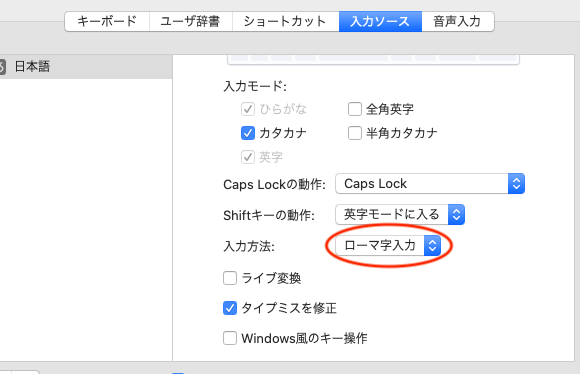 キーボードの入力ソースで日本語を選んでもローマ字入力がでません