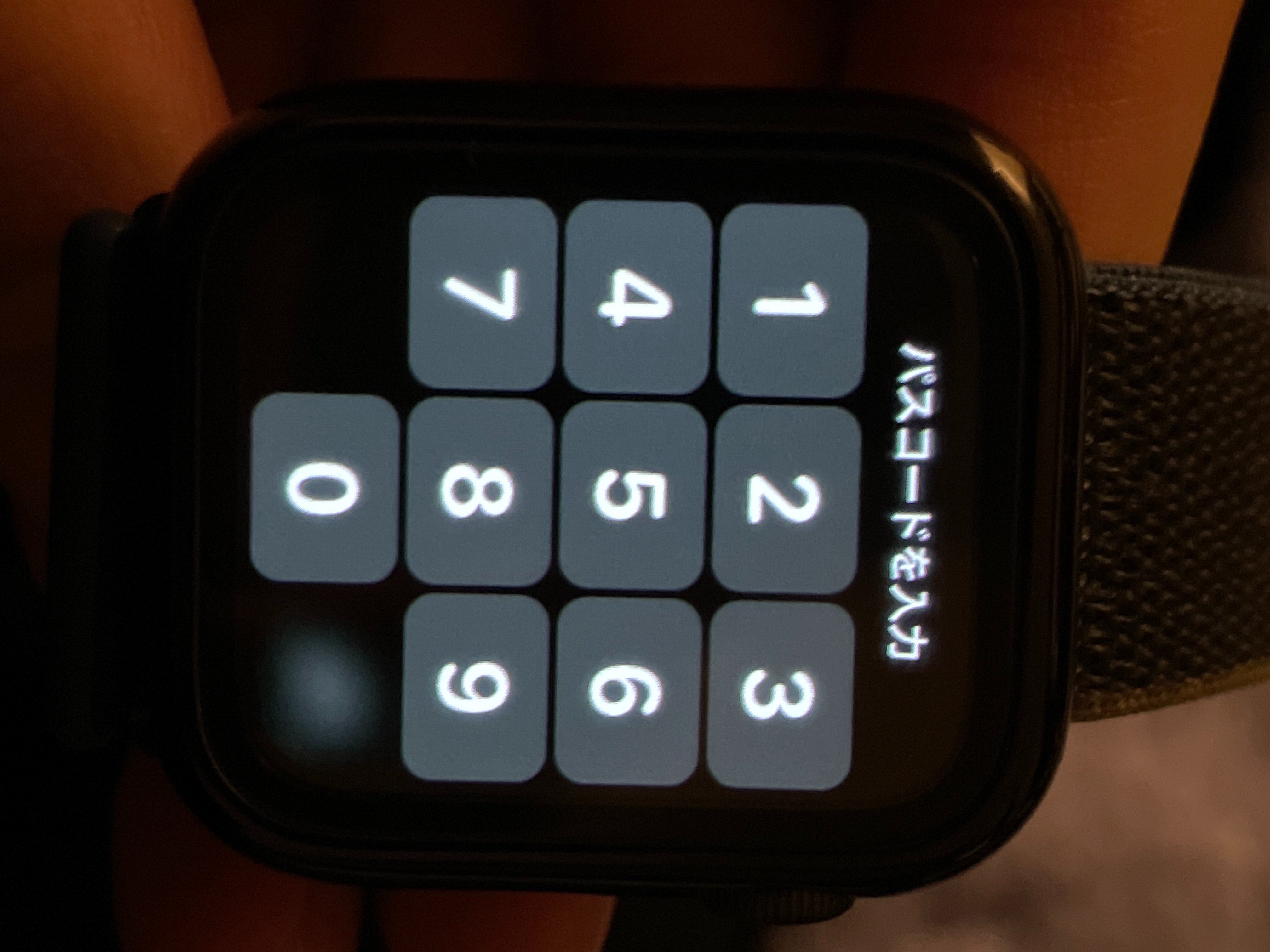 「戻るボタン」の透けだとしても、再起動後(電源起動後)のパスコード画面でしか白い影は表示されません。Apple Watchの着脱時に求められるパスコード画面では白い影は表示されません。