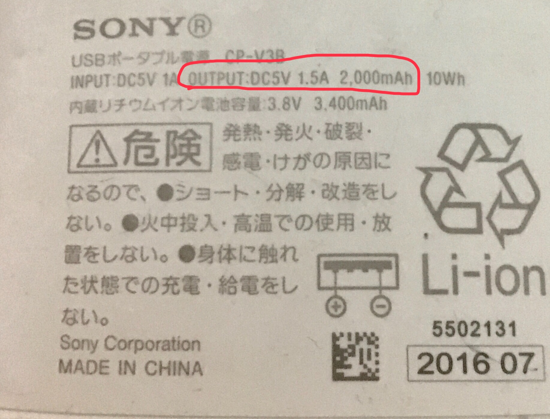 ついでですが、モバイルバッテリーの出力はどのくらいのものですか?