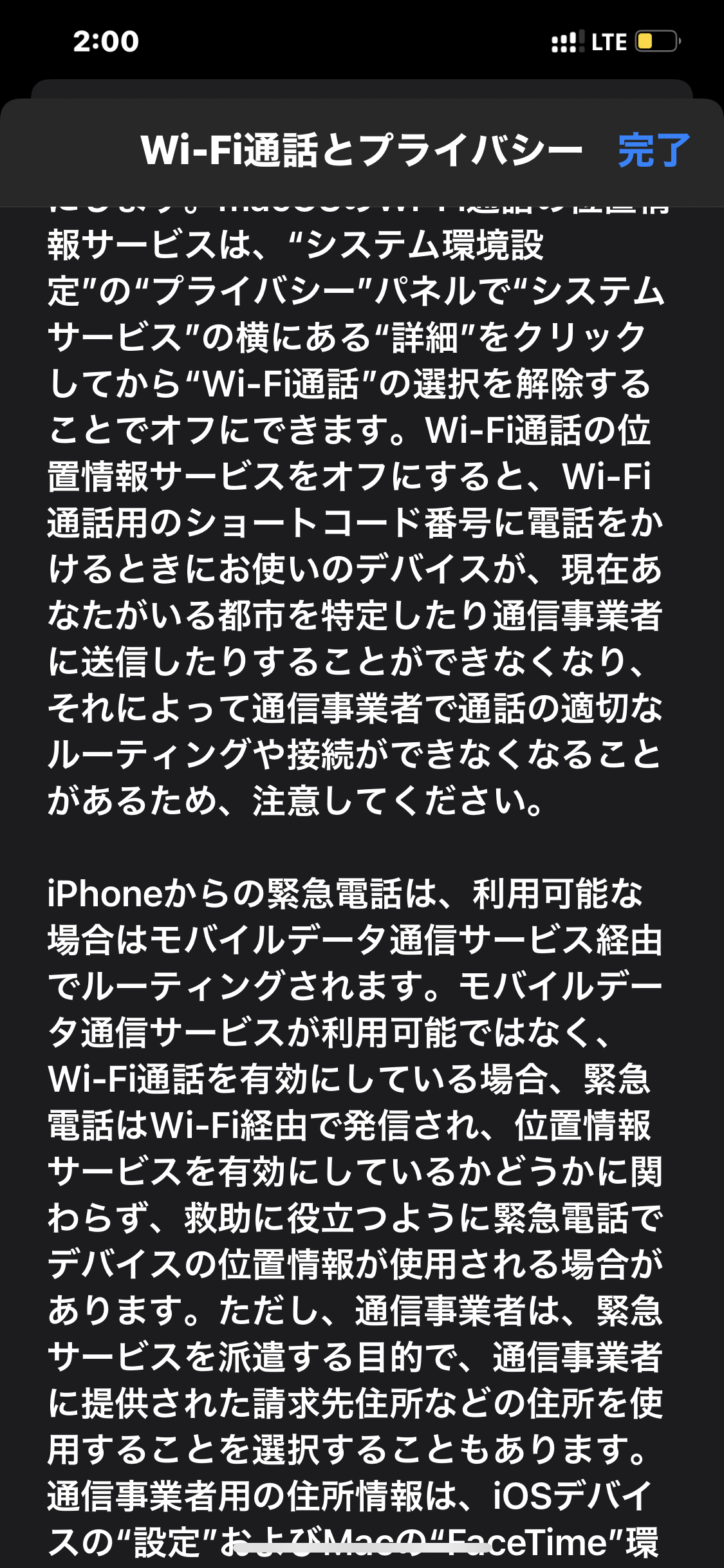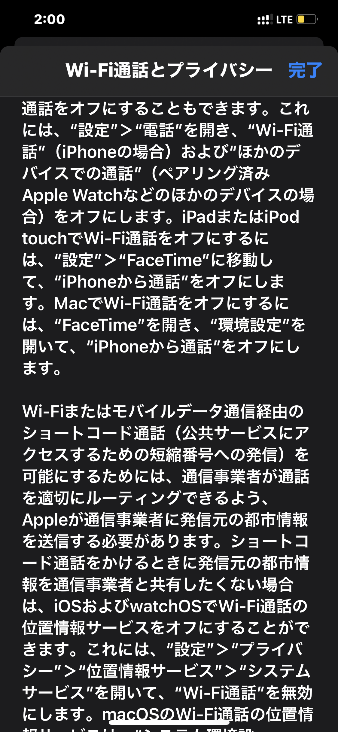 でも、この場合は「設定>電話」のところに「W-Fi通話」の表示はないはずだけど。