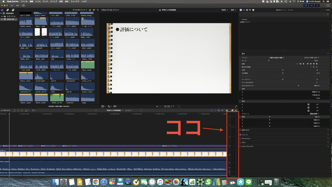 無事に Final Cut Pro のオーディオメーターを非表示にすることができて良かったです。