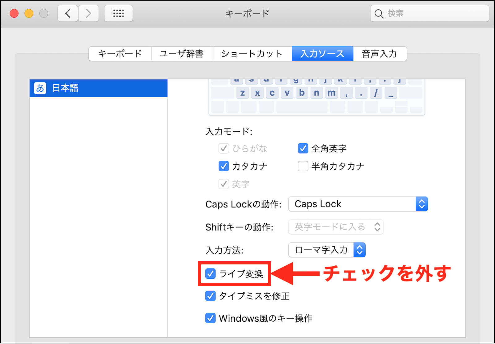 (「システム環境設定」>「キーボード」>「入力ソース」タブで確認)
