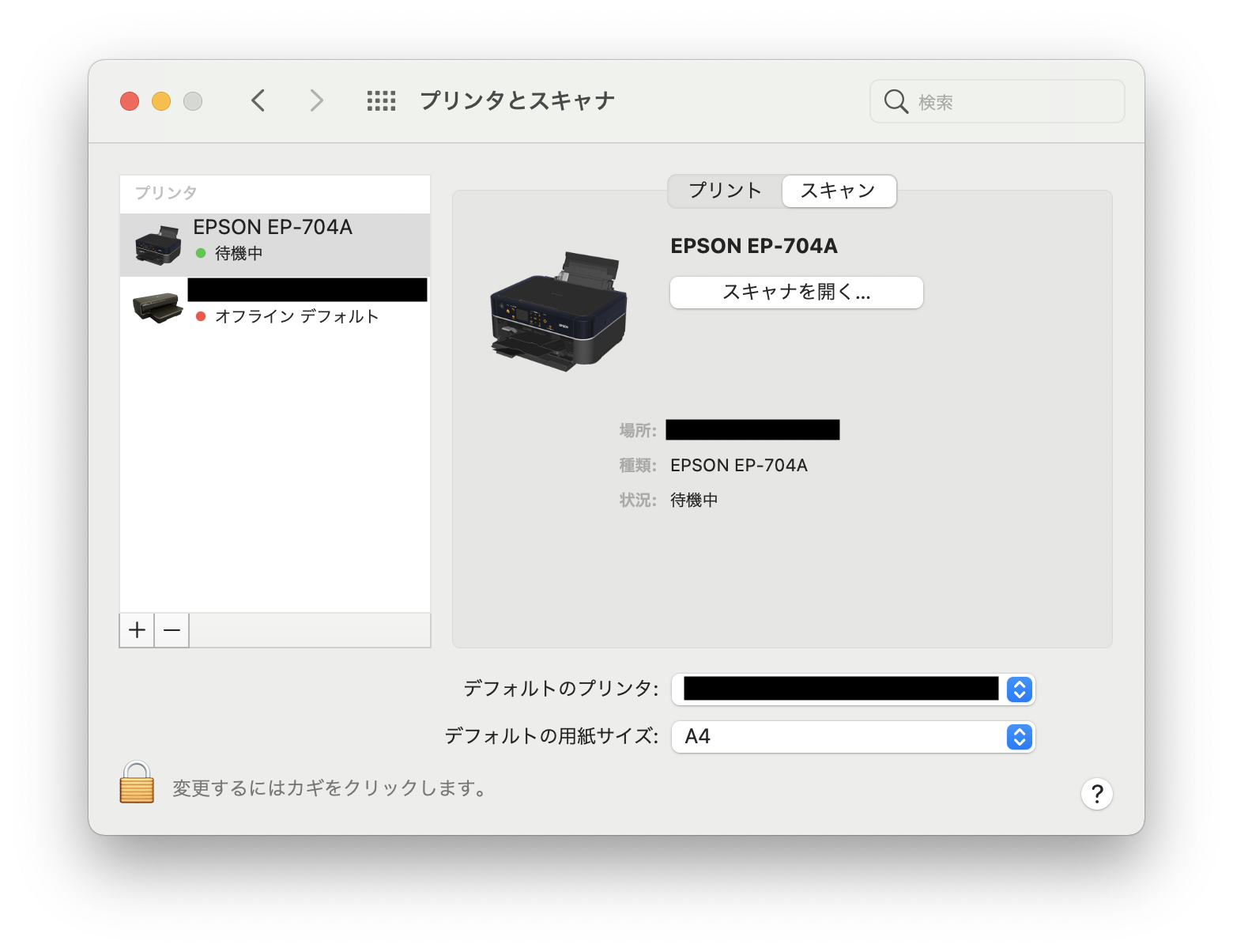 システム環境設定の<プリンタとスキャナ>の<スキャナ>タブの<スキャナを開く>からスキャンできます。(下記画像参照)