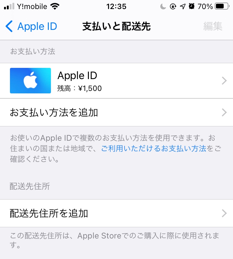別の経路として、設定→氏名→支払い方法と配送先に入ってみるとか。