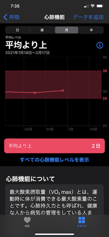 私も同じように途中から心肺機能データが表示されなくなっていましたが、