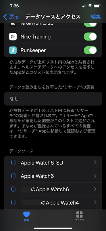Watch4では記録されていなのに、6に買い替えた2月から、心肺機能が記録されなくなり、ソースデータにもwatch6が無い。そのほかのヘルスケアの測定項目には、ソースデータに6が認識されているのに訳がわからない。