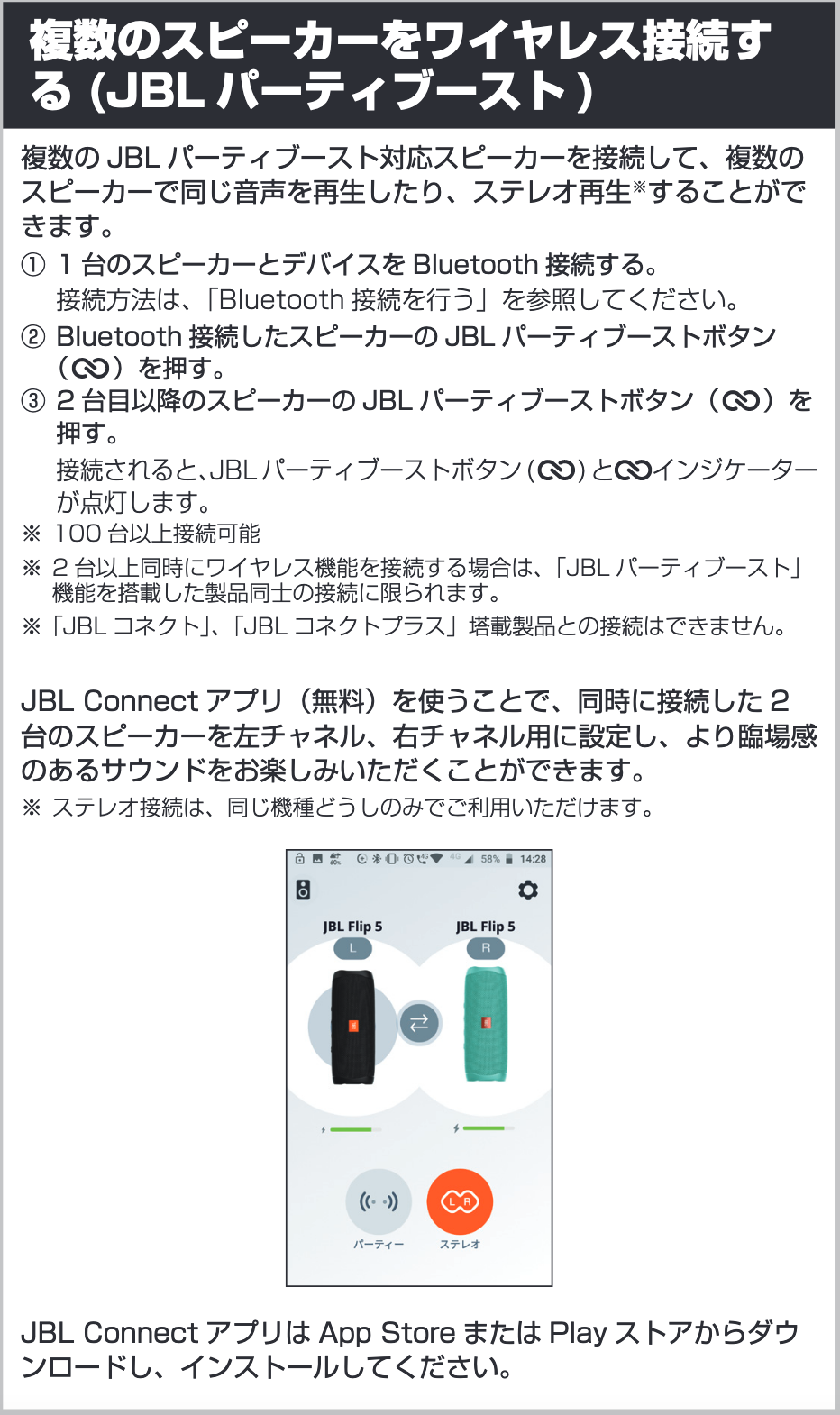2台目のスピーカーに繋げようとboostボタンを押しても反応せず、結果、1台のスピーカーからしか曲を聴くことができません。