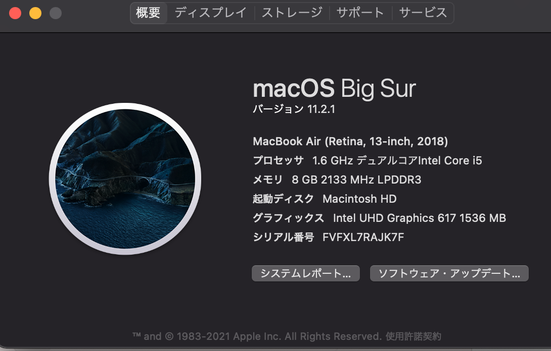 OSはBig Sur 11.2.1です。