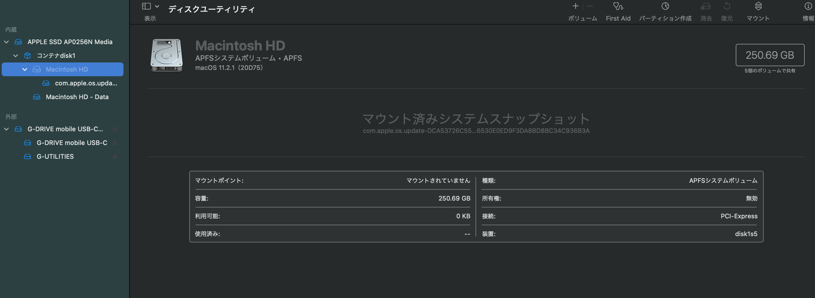 ディスクユーティリティで