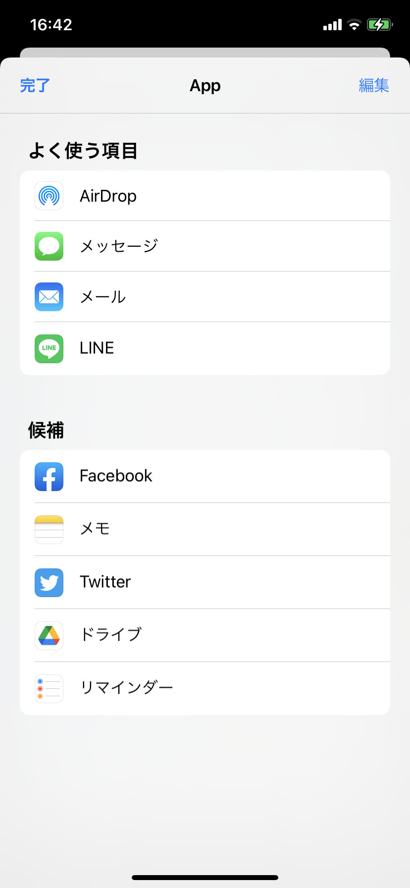 Safari、YouTube等、共有したい時に、アプリ選択で1番右のその他を選び、アプリが表示されるが、圧倒的に少ない。Instagram等が選べない。