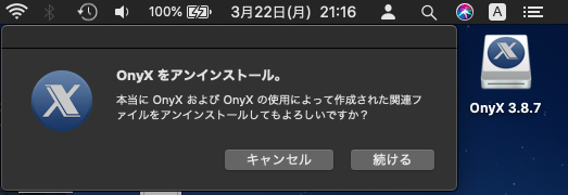 OnyXを全然使っていないので、アンインストールしようと思い、