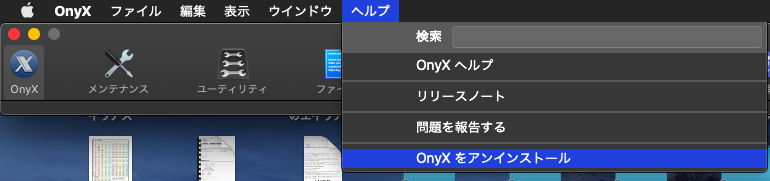 OnyXのヘルプメニューからアンインストールすることが出来ないので、