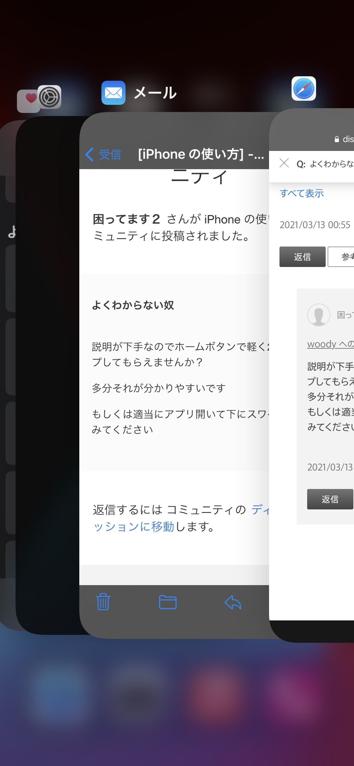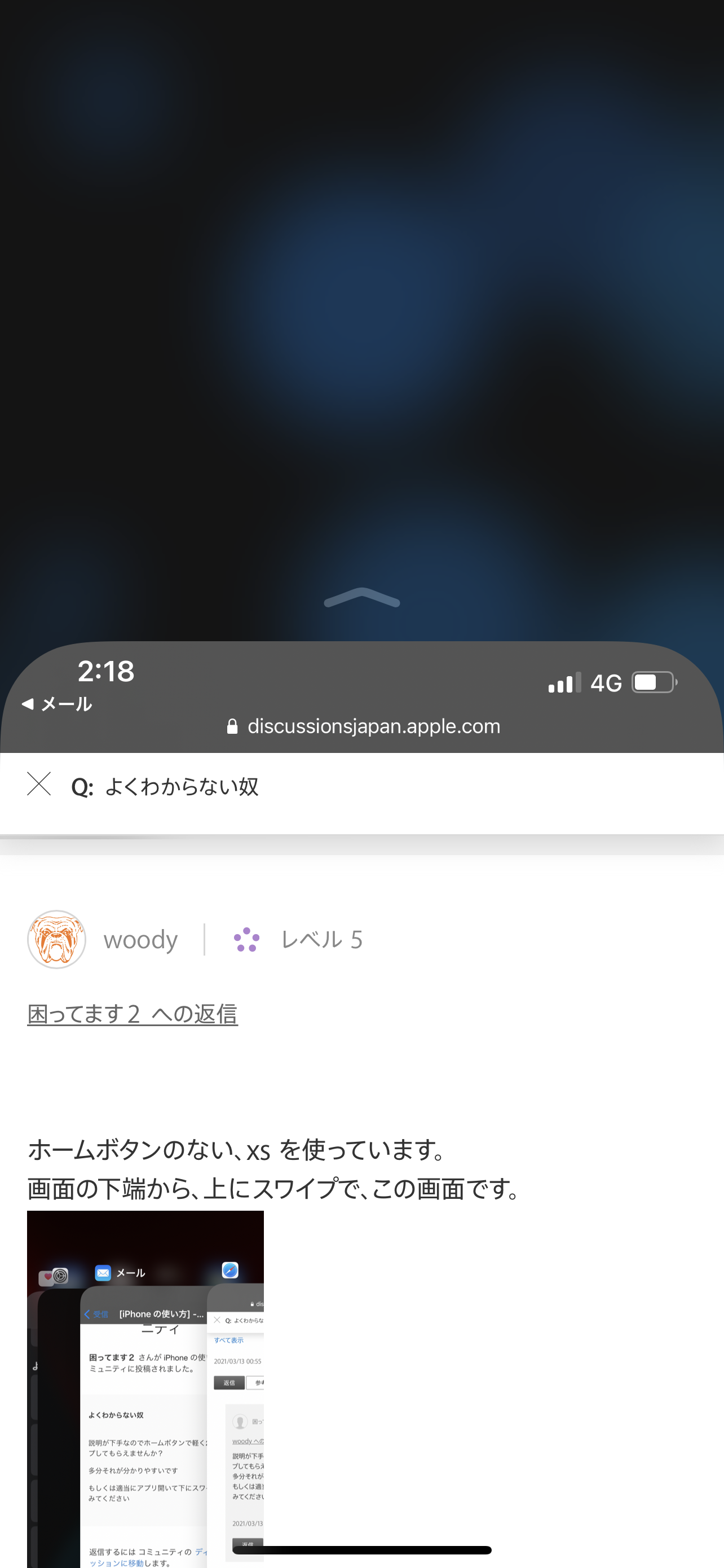 説明が下手なのでホームボタンで軽く2回タップしてもらえませんか?