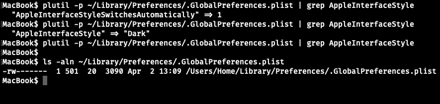 Autoの場合 "AppleInterfaceStyleSwitchesAutomatically" => 1
