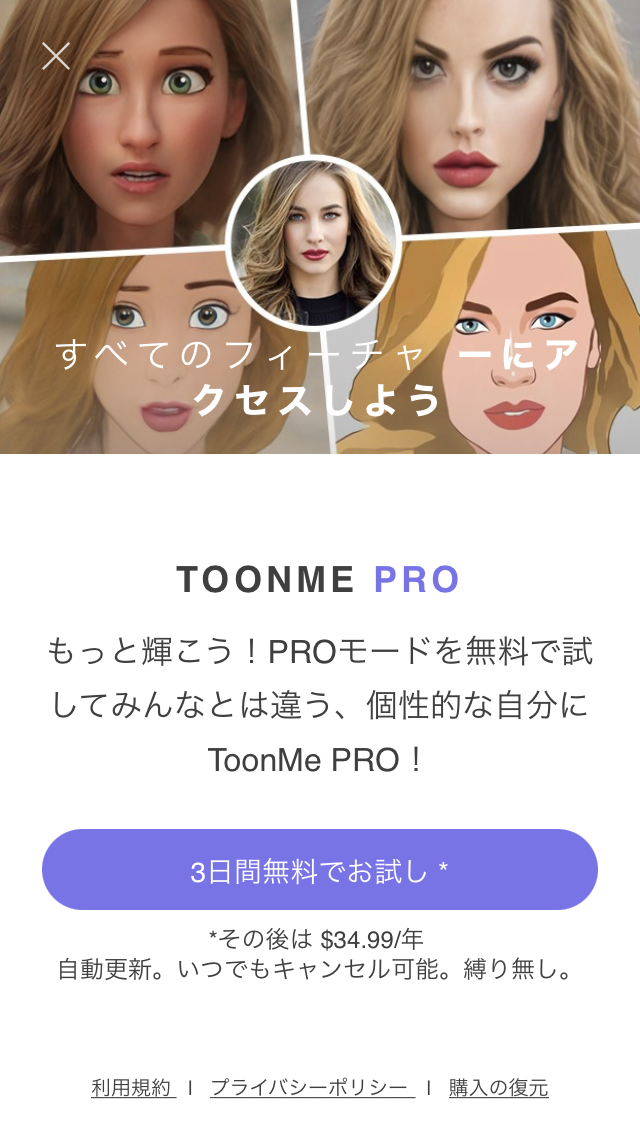 途中、無料お試しを、促す部分が有りますが左上の❌マークをクリックすると画面が閉じますが多少アプリが使えます。サブスクリプションにはサブスクリプションは、有りませんと出てきます。